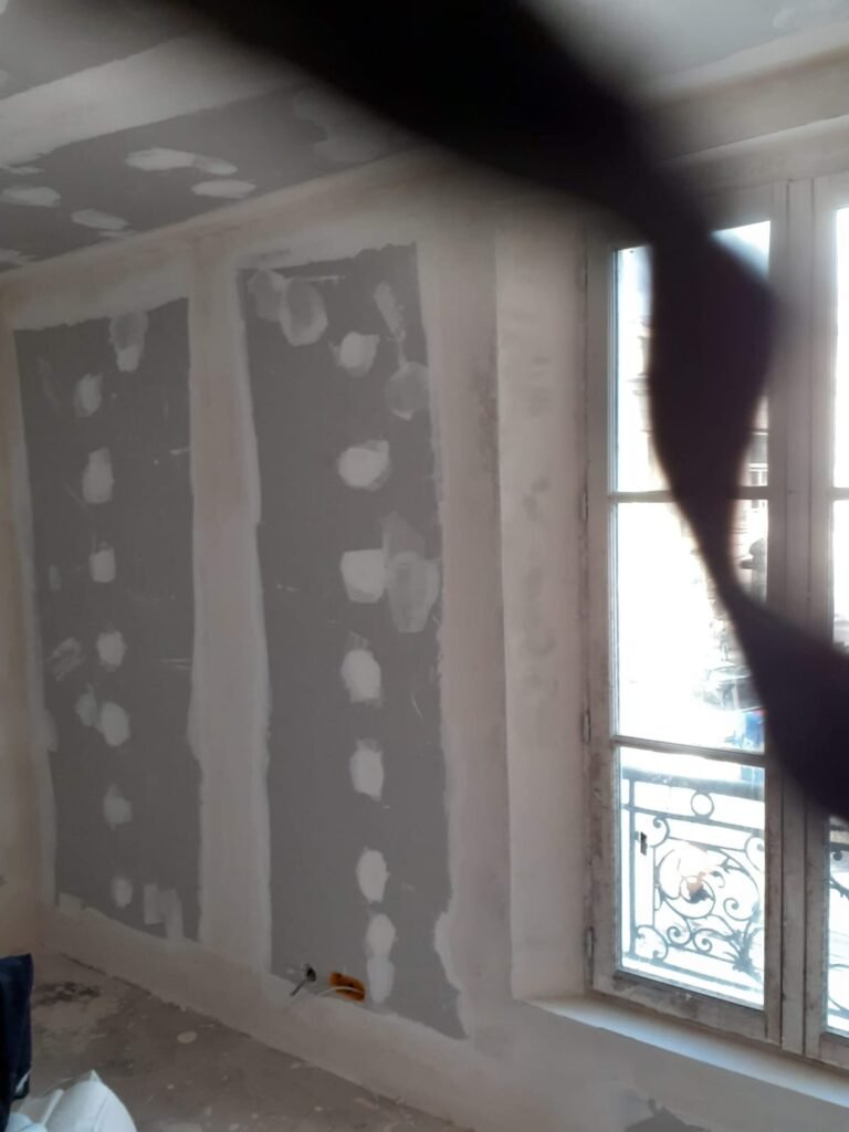 - Installation de plaques de plâtre pour créer des cloisons ou doubler les murs
